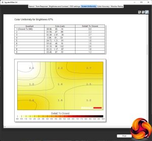 Our main test involves using a DataColor SpyderX Colorimeter to assess a display’s image quality. The device sits on top of the screen while the software generates colour tones and patterns, which it compares against predetermined values to work out how accurate the screen is.