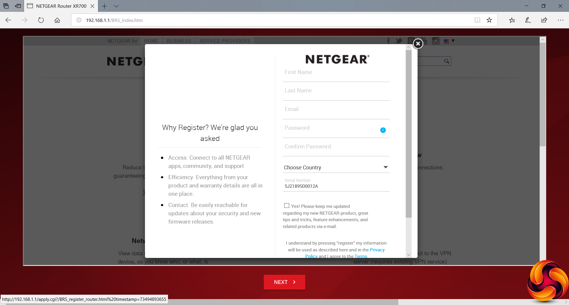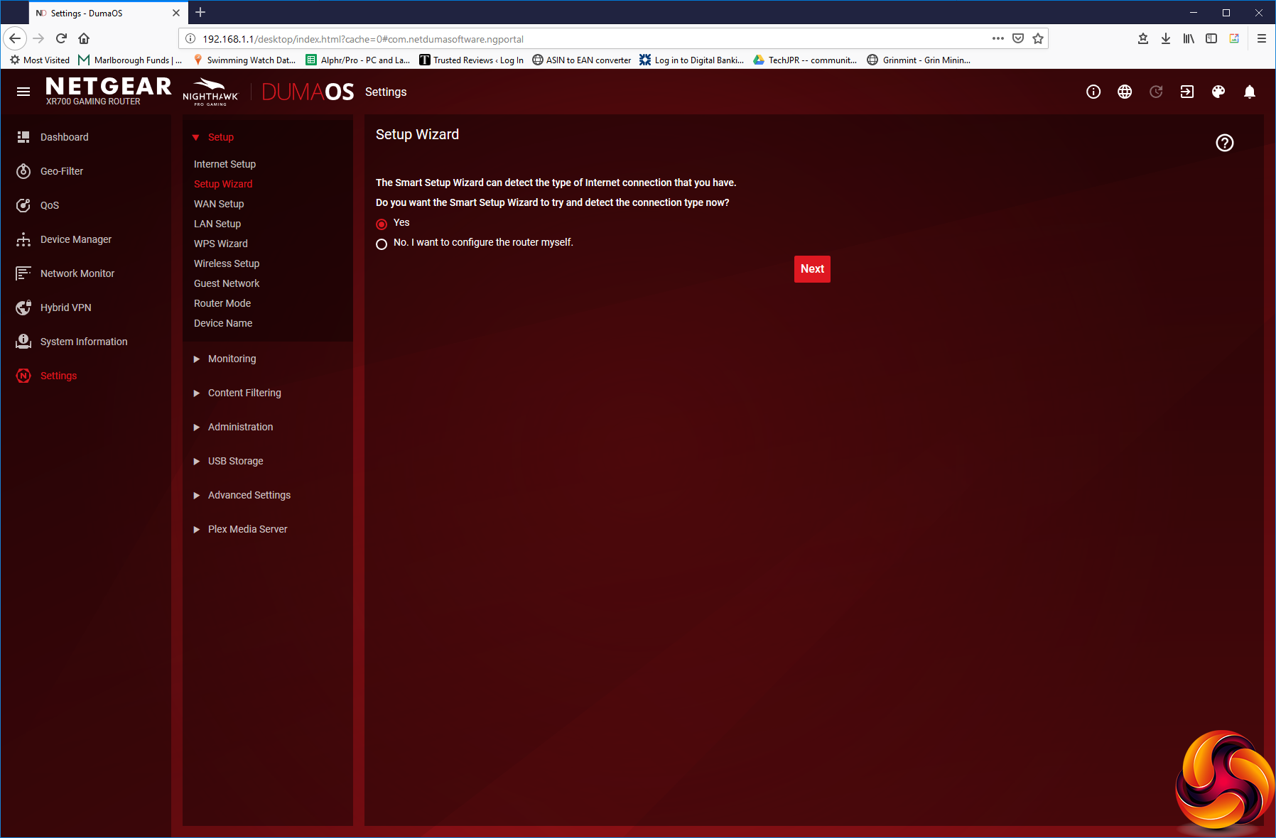 When you first try to connect to the XR700's Web interface, you're met with a wizard process that leads you through terms and conditions, choosing which port the WAN is connected to, then Internet autodetection and speed analysis, although we found the upload speed couldn't be detected properly.