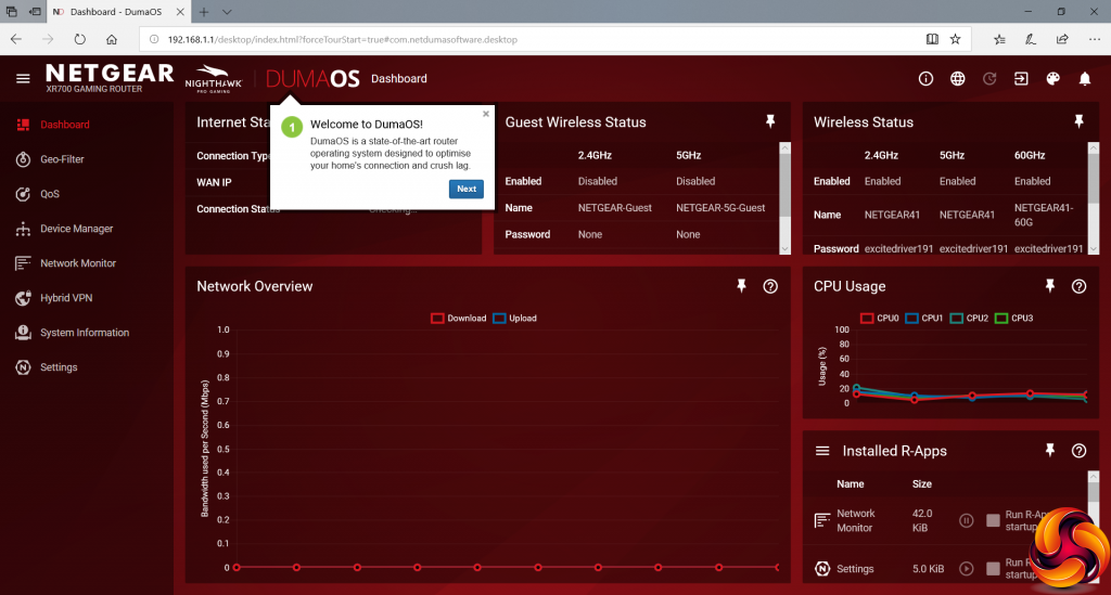 Finally, it's time to log into the administration interface proper. The front end of this is DumaOS, a networking application specifically designed to optimise your gaming experience.
