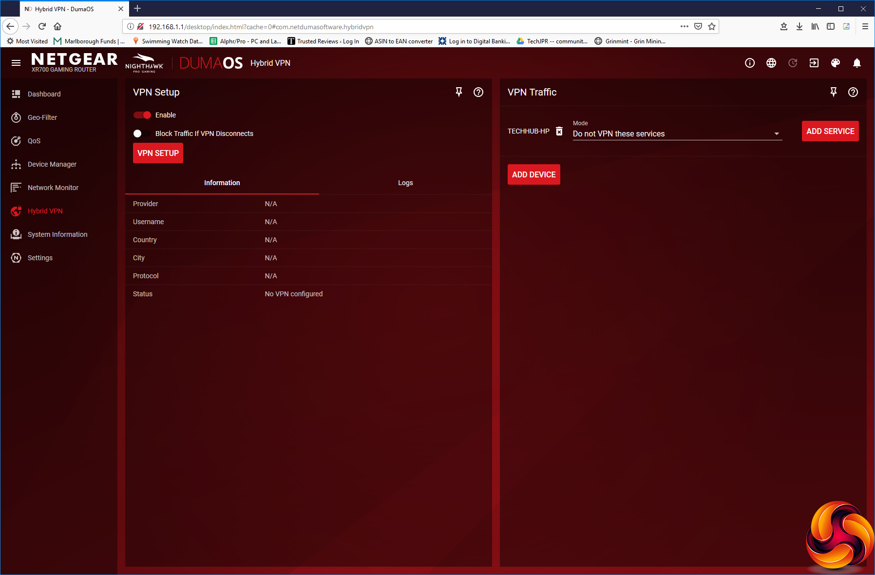 Finally we come to a feature that the Nighthawk XR500 doesn't have – Hybrid VPN. This lets you set up a VPN connection that only applies to a specific game from a particular client device.