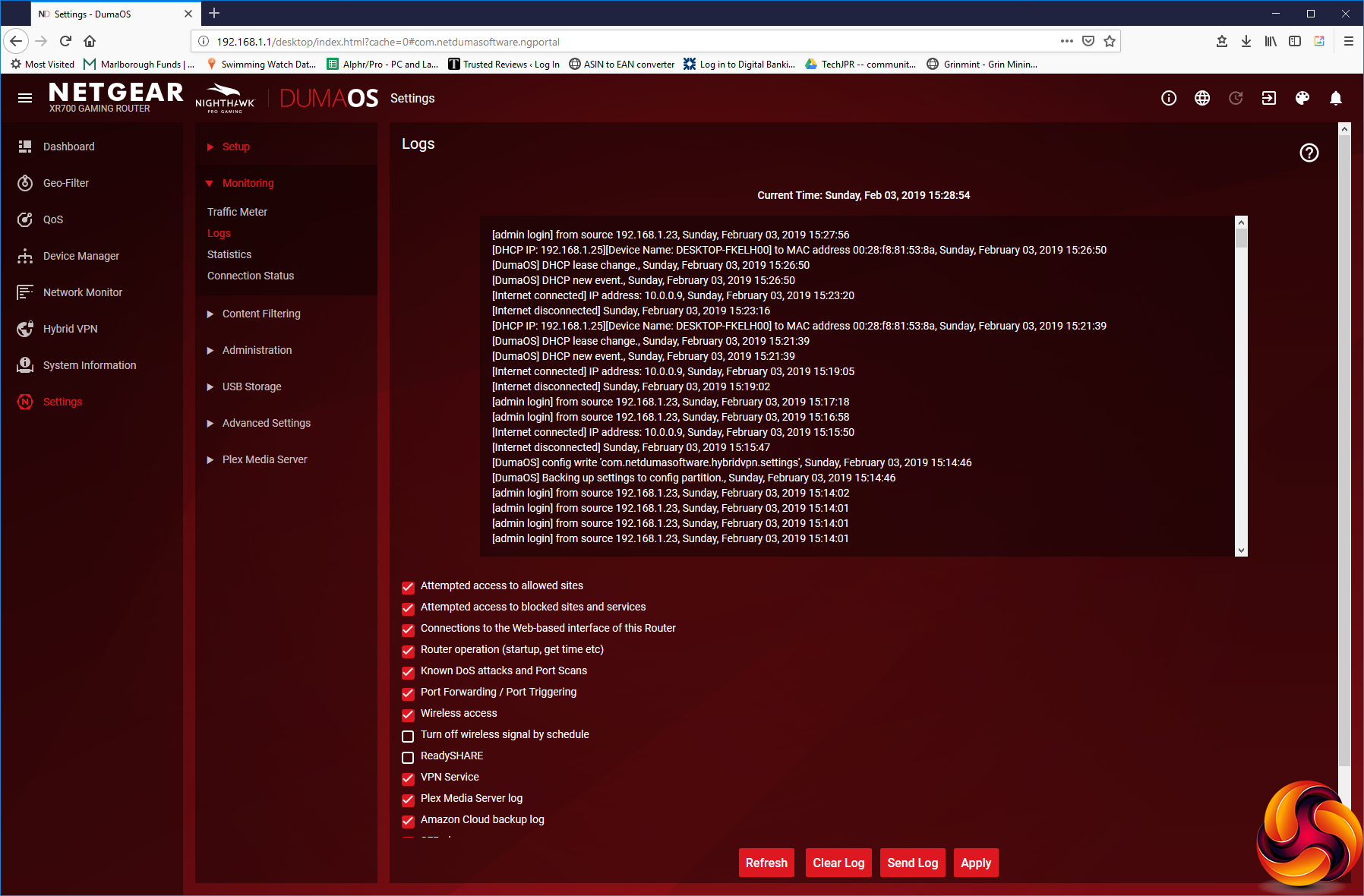 There's another Monitoring section to be found here, which lets you see statistics and limit data usage if you have a capped Internet connection. You can view the system log and toggle what gets recorded. You can see numerical details of how the WiFi and wired ports are being used, and an overall readout of the Internet connection status.