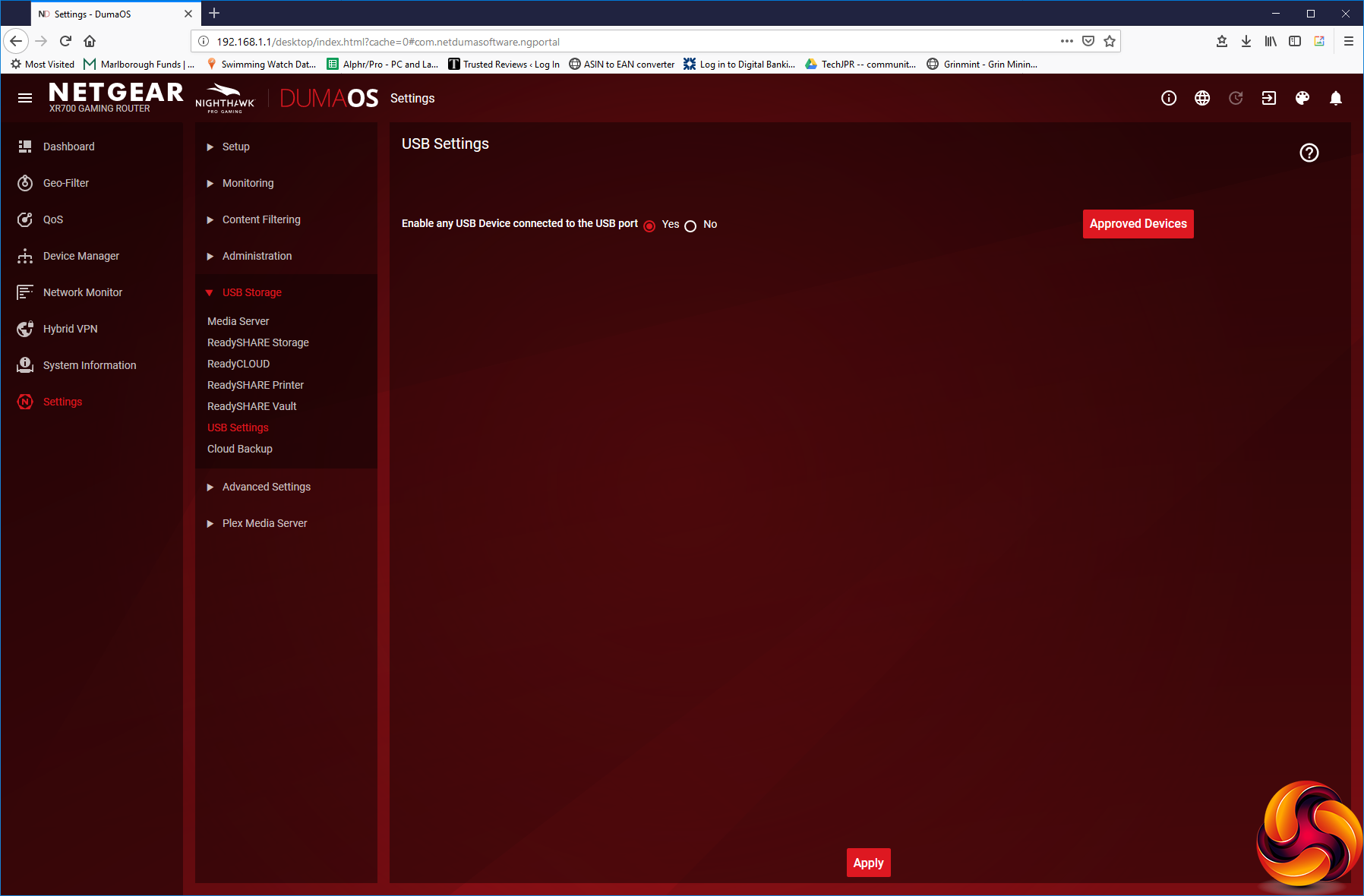 You can disable the USB ports altogether, or just allow approved devices to be attached. Finally, you can configure the XR700 to back up data from your USB-attached devices to an Amazon Drive Cloud account.