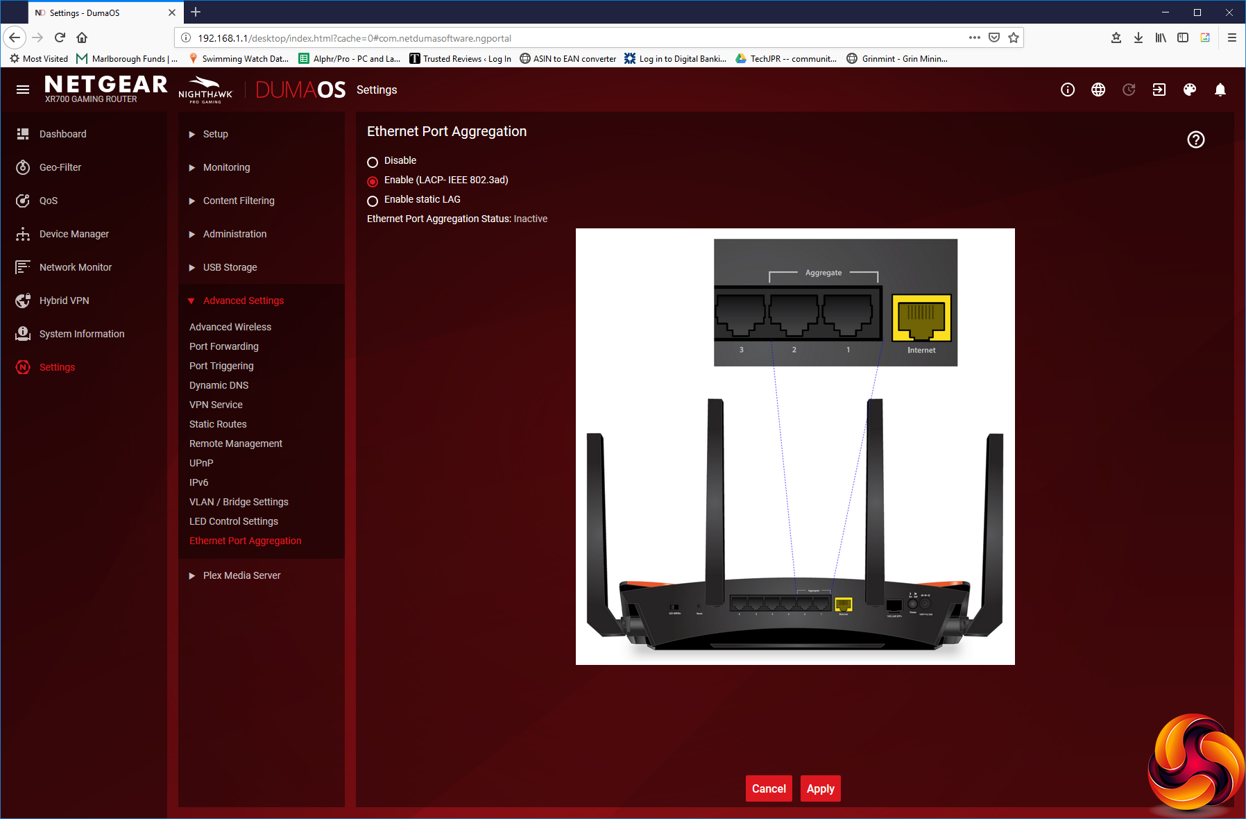 Finally, you can enable aggregation of LAN ports one and two, as discussed earlier in this review.