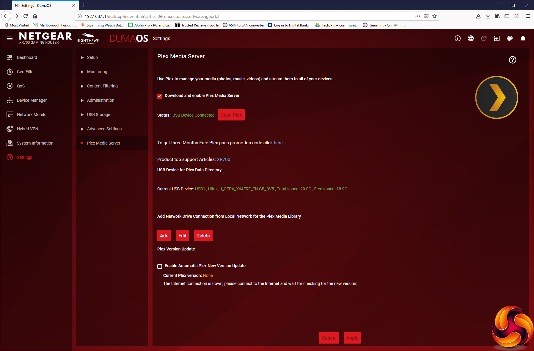 Last, but not least, there's built-in support for the PLEX media server, However, you need to attach a USB storage device and download the software to this drive to enable the server. This is another feature that the XR500 doesn't have.