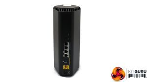 The ports are ranged vertically up the back of the router, with a recessed reset and regular on-off button at the top. Below that is a pair of Gigabit Ethernet LAN ports, which can be aggregated together when routed to a Network Attached Storage device. Below that is a pair of 2.5Gbit Ethernet LAN ports. The lower of these can be aggregated with the 2.5Gbit Ethernet WAN port at the bottom, to create a 5Gbit link to a compatible modem. In between these two is a USB 3.0 port, which can only be used for adding storage, not sharing a printer or mobile data modem.
