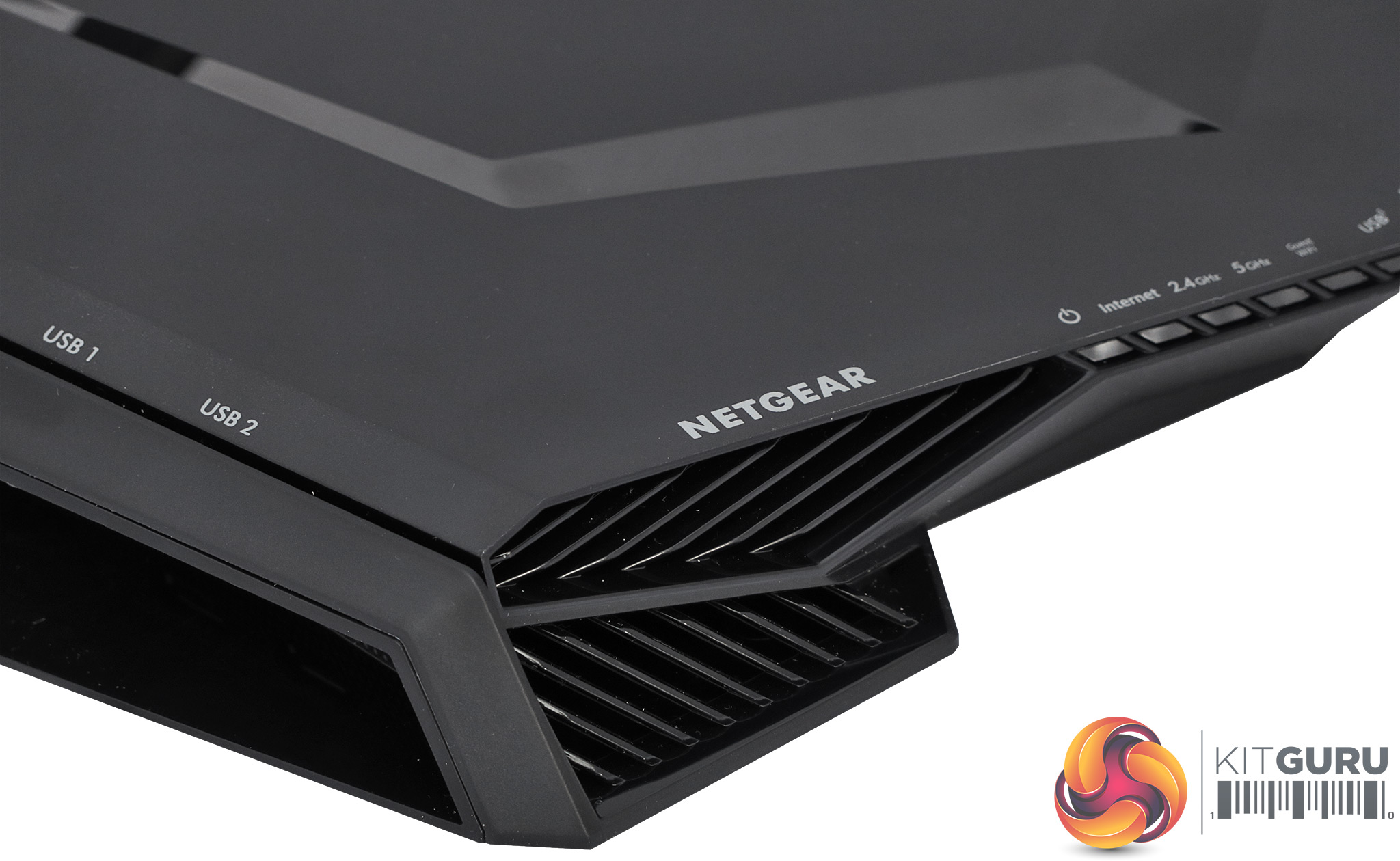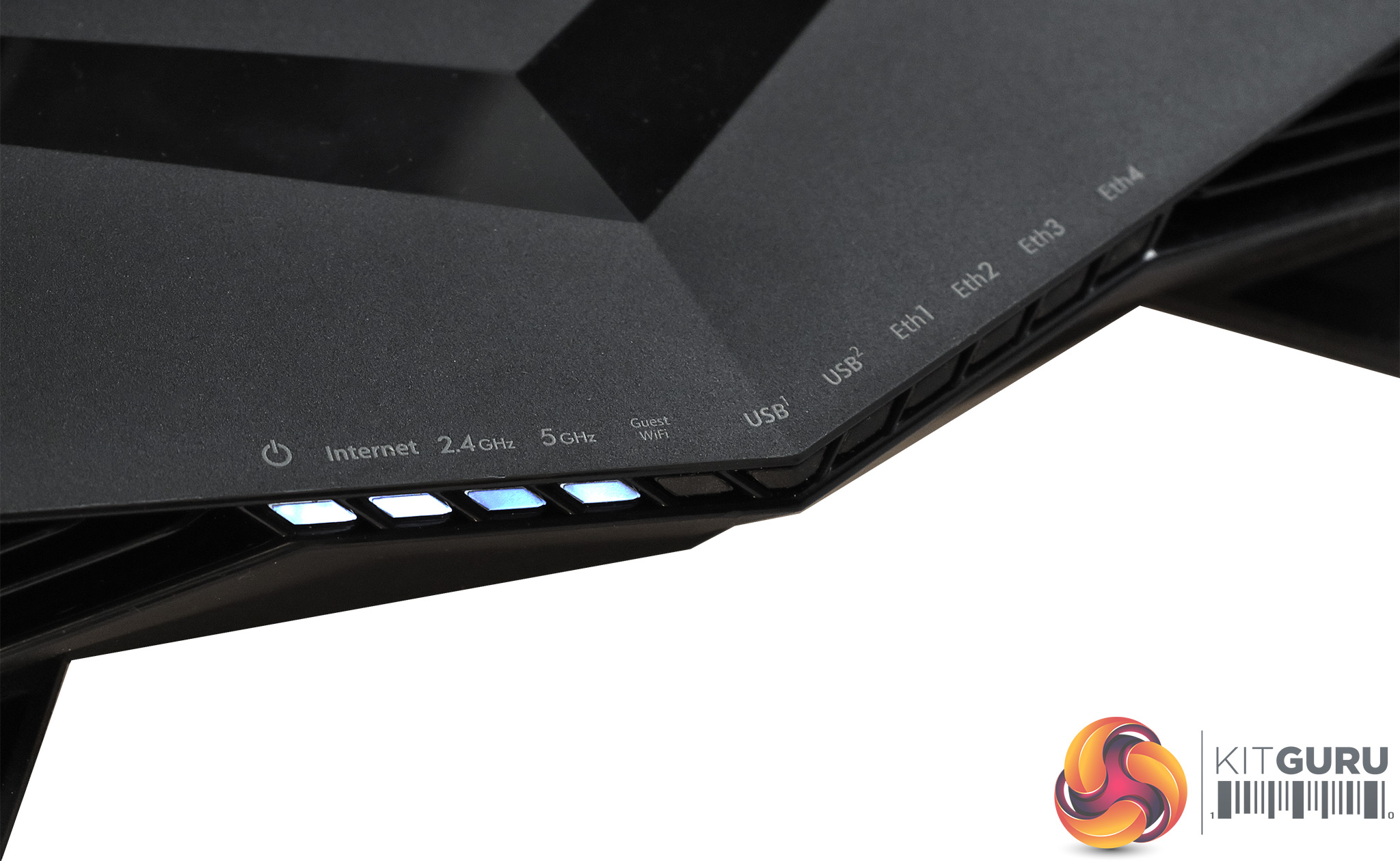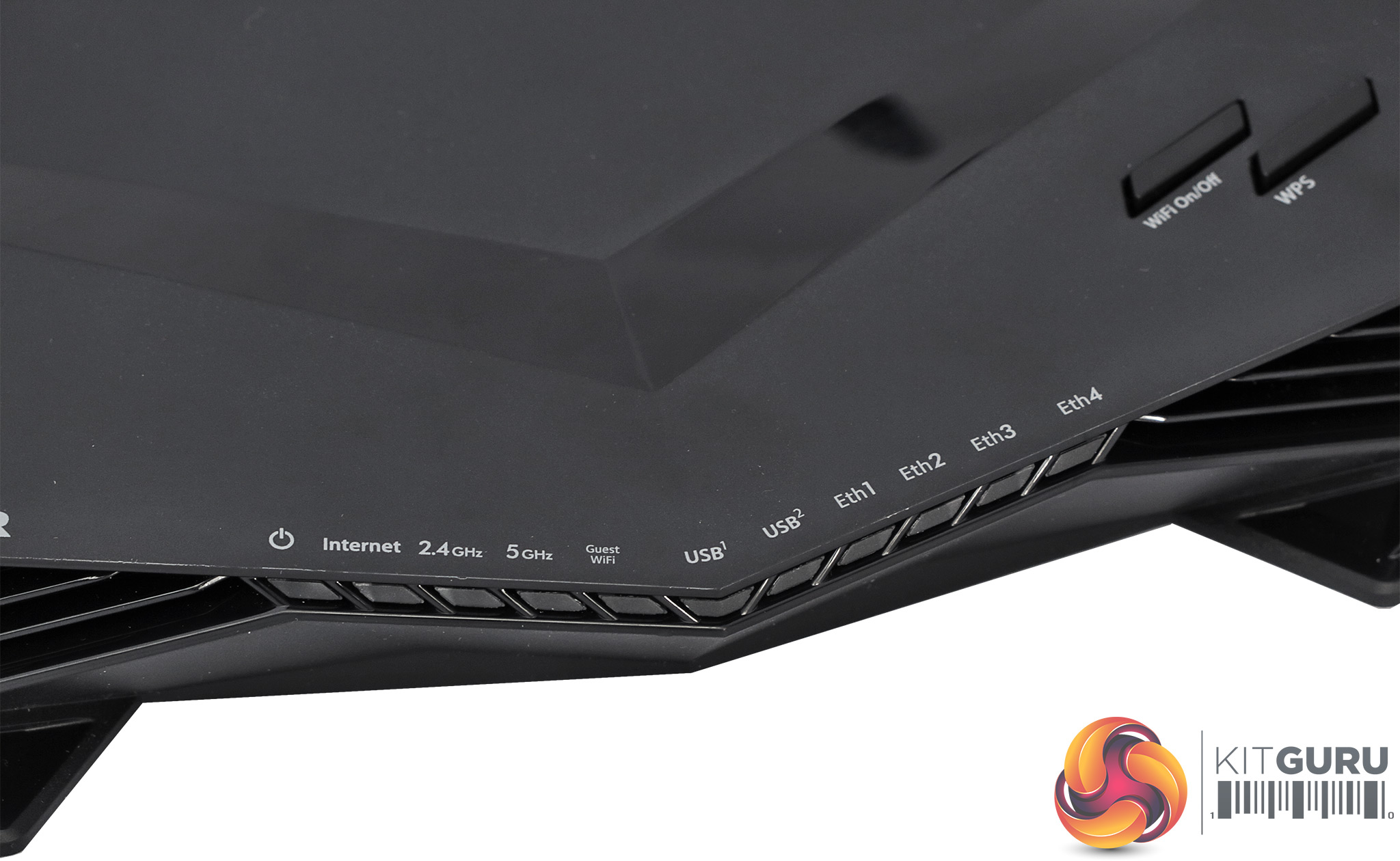 There's a pretty edgy-looking row of LEDs along the front of the XR500, and these provide a comprehensive readout of all the possible connections, from broadband to both WiFi wavelengths, both USB ports, and all four Ethernet ports. There's also a light for the Guest WiFi. Two buttons on the top right let you turn WiFi off and on, as well as enabling WPS for easy WiFi enrolment.