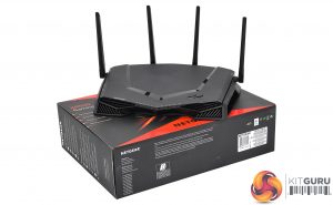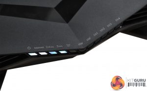 We think this router looks like someone took a Predator, or the original cylon robot from Battlestar Galactica, and squashed it flat. But this is still a pretty mean-looking device, and it definitely fits within the the typical ‘gamer' aesthetic.