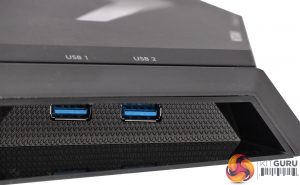 The two USB 3.0 ports are on the side, considerably recessed under a plastic overhang, which could be an issue for some larger USB drives. Nevertheless, they're still quite easy to access from the front, and their positioning here is allegedly because USB 3.0 produces too much EMF interference to be right next to the antennas at the rear.