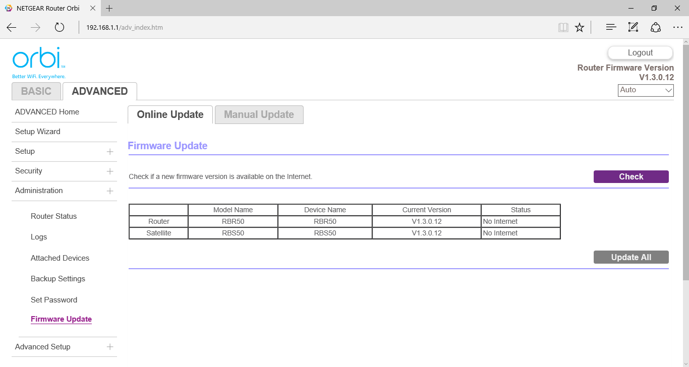 But if you do want to perform more detailed configuration, Netgear offers two ways of managing the Orbi – a web interface and its genie software. We're going to focus on the Web interface, as the genie software offers the same features.