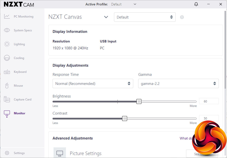 With your PC connected to the monitor via USB as well, you can install NZXT's CAM software to enable control over the screen's settings from your Windows desktop. Not every option is included, but all the most important ones are, making this a genuinely useful ease-of-use capability.