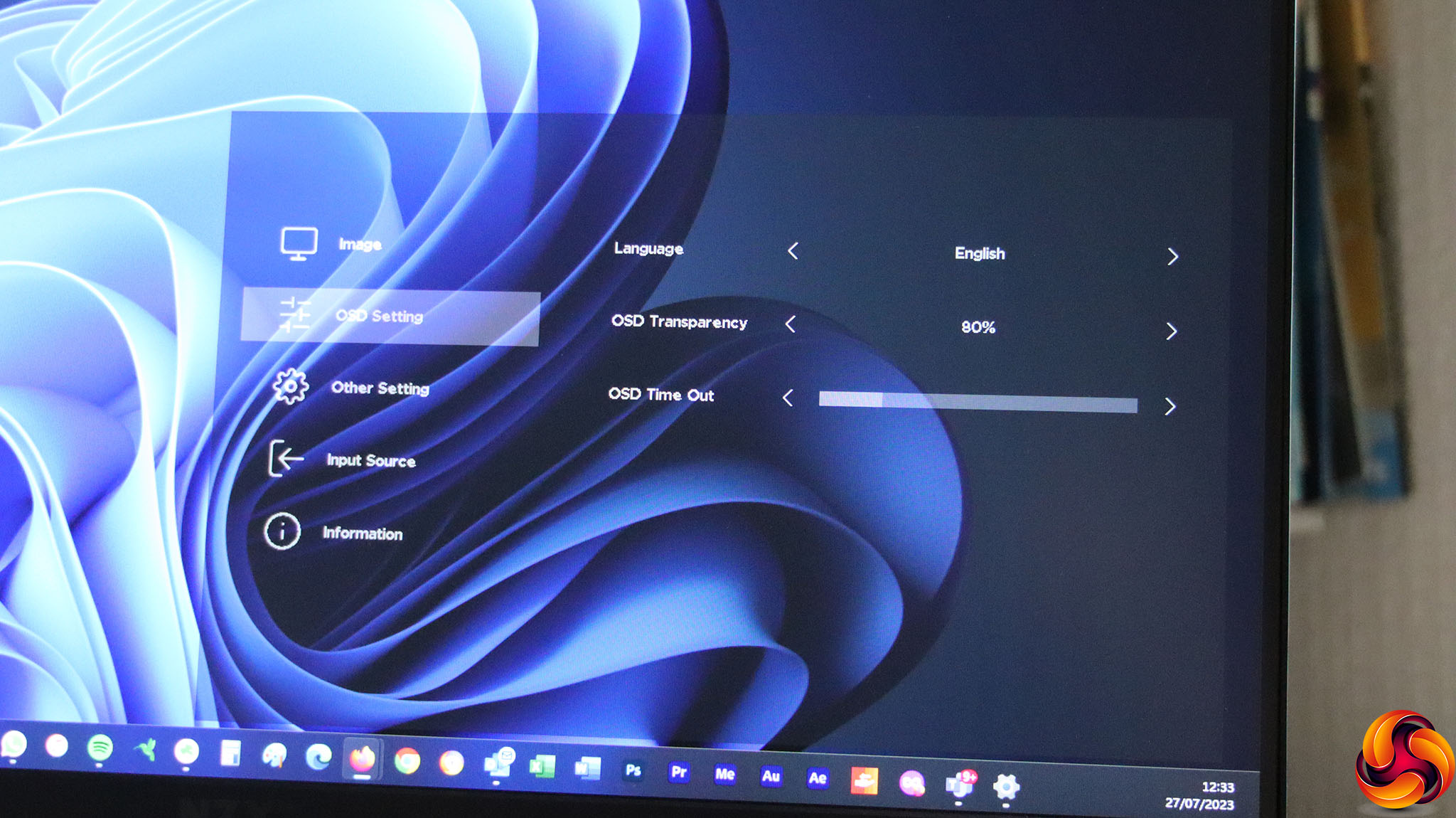 Push the joystick in and you get to the Main Menu, with the Image subsection open by default. This gives you combined access to the Picture Modes, Brightness, Contrast, and Sharpness. Color Temperature options include Cool, Normal, Warm and Custom, which lets you choose Red, Green and Blue values separately. Gamma levels include 2.0, 2.2 (the default), 2.4 and (strangely) Off. If you scroll further down, and you can alter Saturation, Response Time (Normal, Fast, Fastest), Refresh Rate display in the upper left or right corner, and turn MPRT on or off. The latter improves the perception of motion clarity when gaming. You can also vary the level of Low BlueLight and Black Equalizer, as well as force aspect ratio to 4:3 or 16:9.
