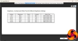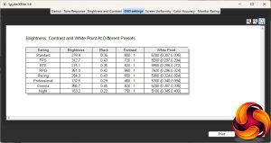 - A monitor’s contrast ratio at various brightness levels in the OSD.