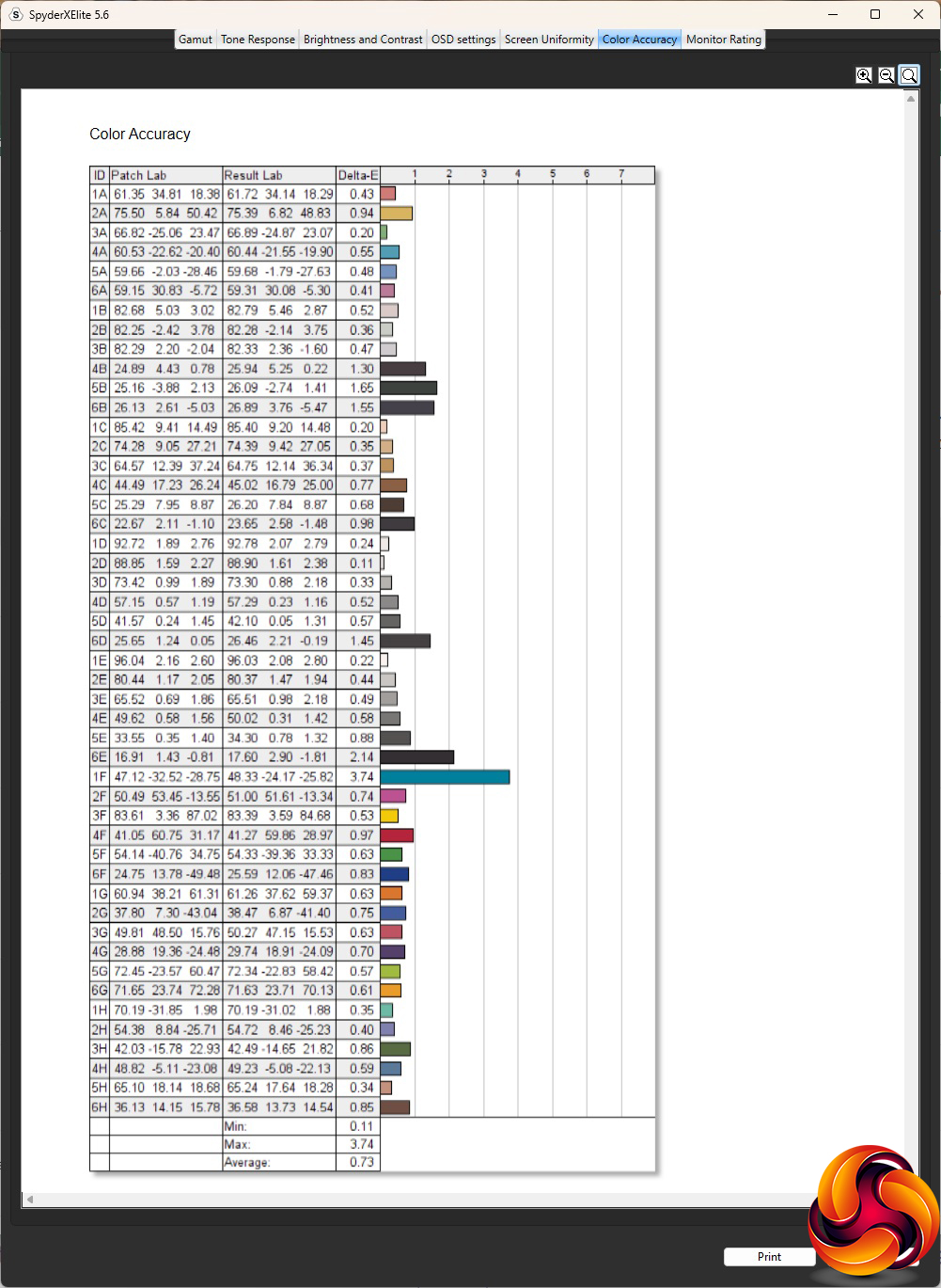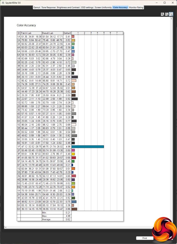 - The colour accuracy, expressed as a Delta E ratio, with a result under 3 being fine for normal use, and under 2 being great for colour-accurate design work.