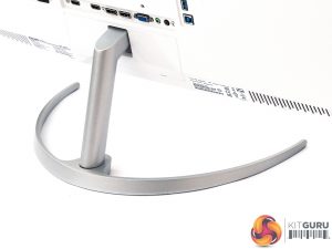The stand is almost entirely fixed. We wouldn’t expect the ability to rotate into portrait mode in a curved monitor (that would be a bit silly, although we have seen it), but a bit of swivel and height adjustment might have been useful. Instead, there is just a smidgen of tilt, with 10 degrees backwards and 5 degrees forwards available.