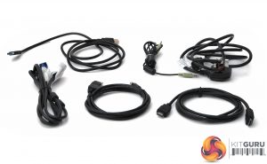 Since the screen has its power supply built in, only a kettle lead is necessary to hook up to the mains. There's a USB cable for the built-in hub, and an audio cable so you can route PC audio to the screen's built-in speakers. Video cables are supplied for three of the four connection types available – VGA, Mini DisplayPort and HDMI.