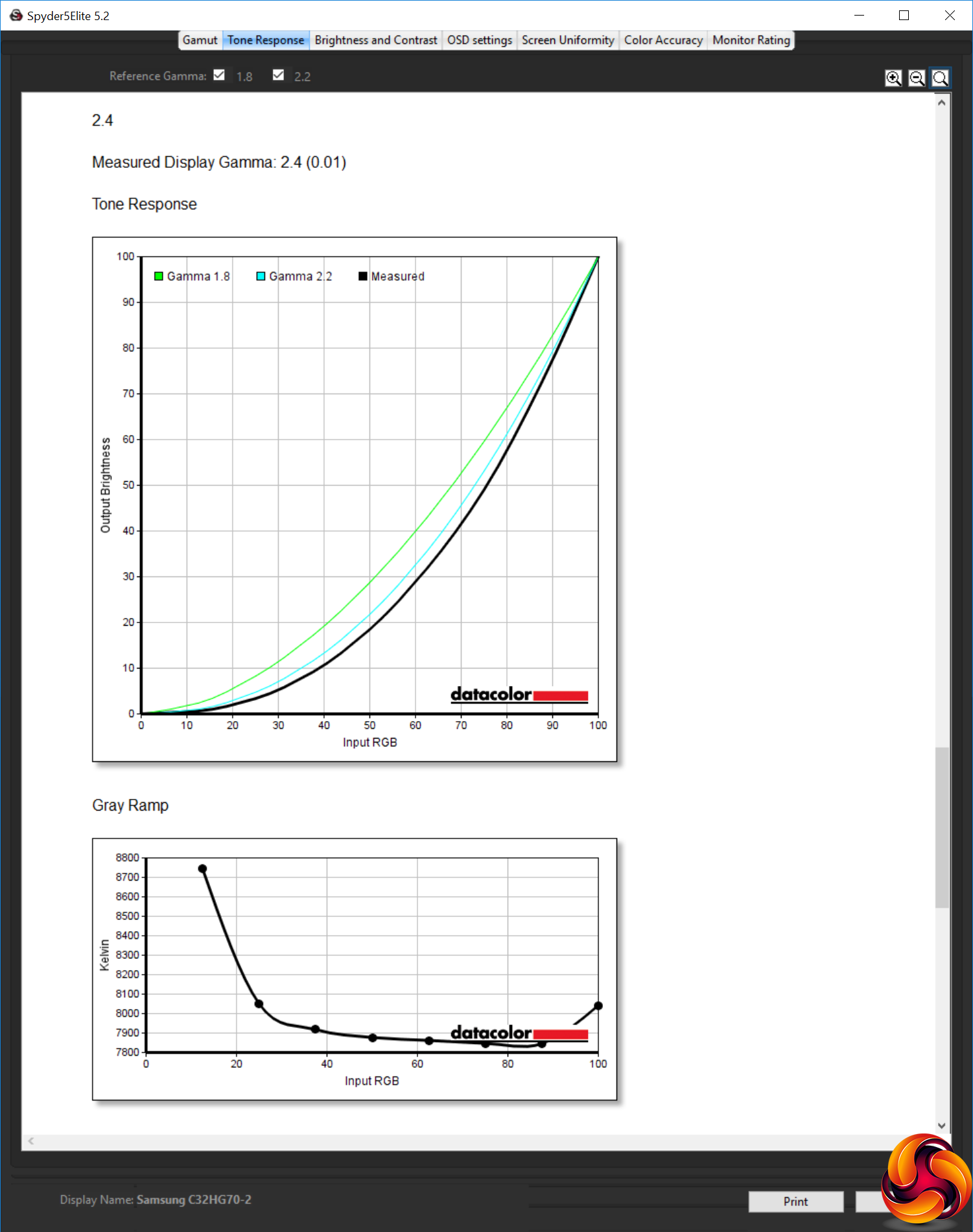 - The exact gamma levels, with a comparison against preset settings in the OSD.