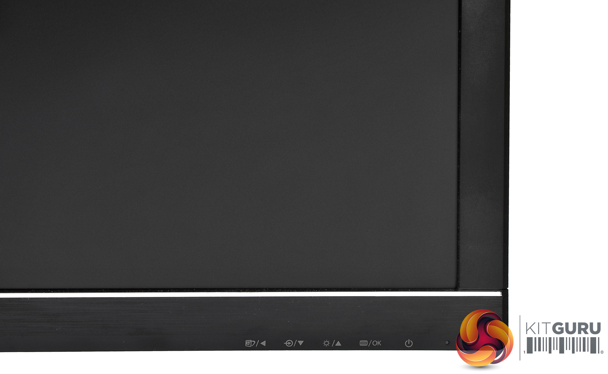The OSD control buttons are marked on the front, but they're not actually physical buttons. They're touch-sensitive zones that can be accessed by tapping on the front or underneath. This is a little unintuitive at first, where you might be expecting real buttons. But it's a reasonably comfy system once you're used to it.