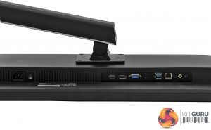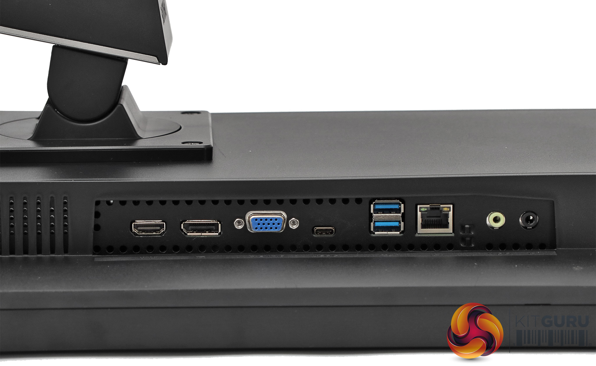 All the connections to the 328P6AUBREB are on the rear on a slightly recessed panel. The two audio minijacks for headphones and analog input are on the left (when looking from the front), then the mysterious RJ45 port, followed by two USB 3.0 connections and the all-important USB-C port. Then there's VGA, DisplayPort 1.2 and HDMI 2.0.