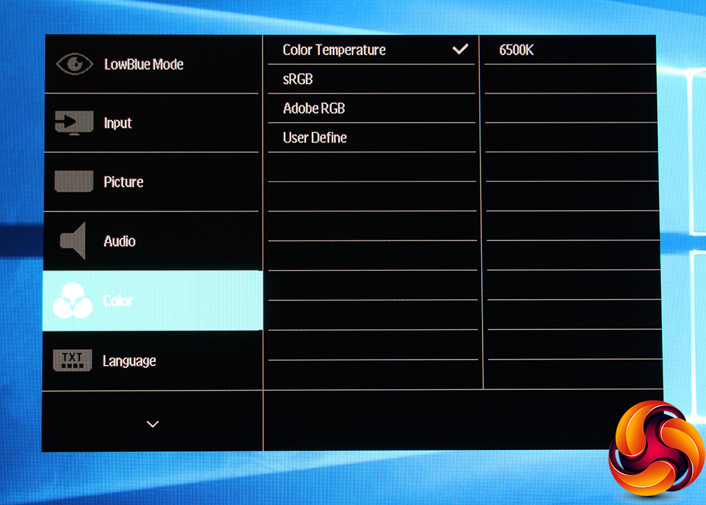 The Color submenu is only available if you're not using one of the SmartImage presets. This includes Native, 5000K, 6500K, 7500K, 8200K, 9300K and 11500K Temperature options, which is a decent range. Alternatively, there are sRGB and Adobe RGB modes, plus a User Define option that lets you configure the red, green and blue signals manually.