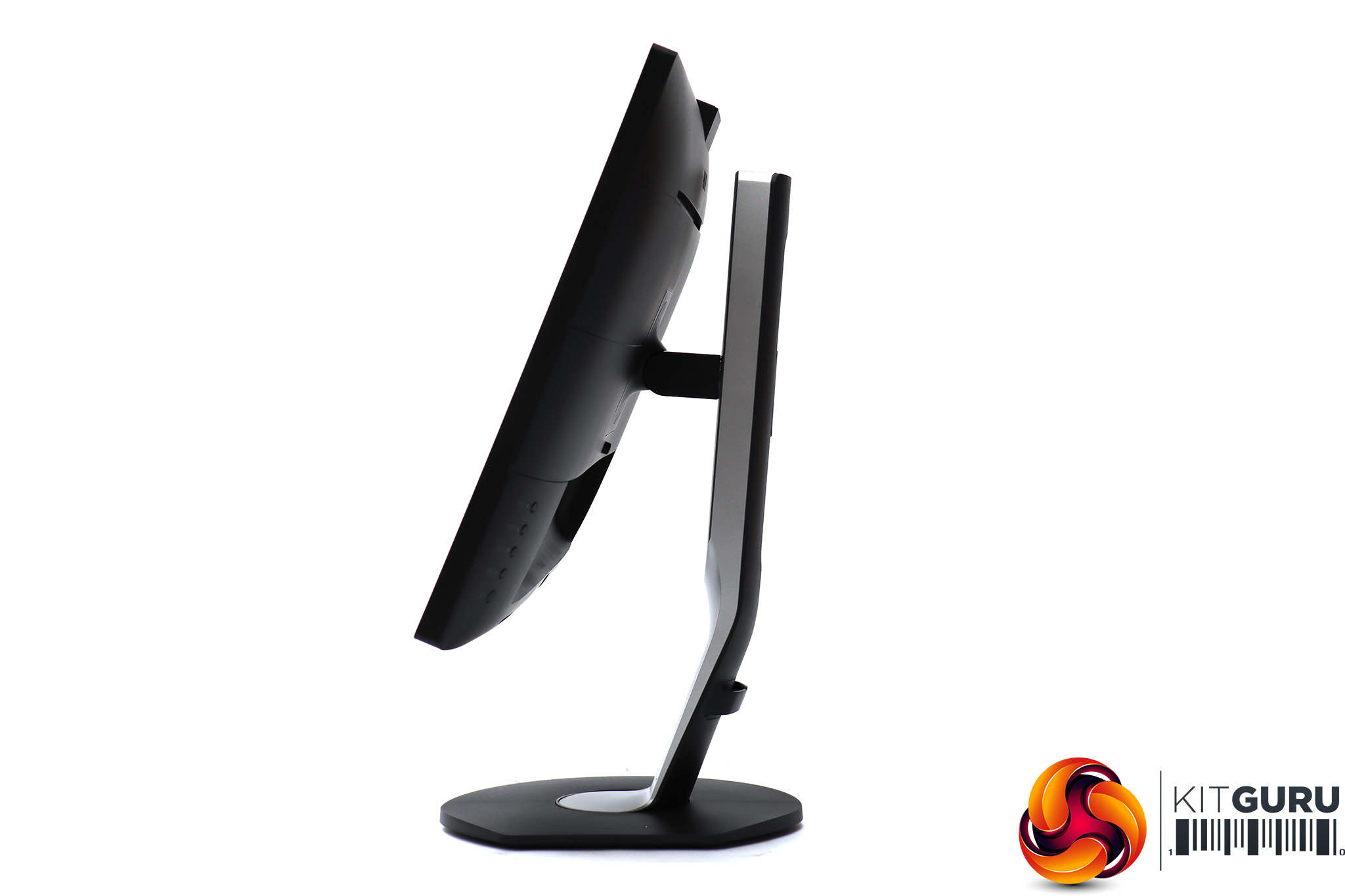 The adjustment potential is about the best we've seen in a monitor. You can tilt it 5 degrees forward and 25 degrees backward. You can almost turn the screen all the way round on its stand. However, it doesn't just completely rotate. Instead you get 175 degrees of swivel left and right, which is close enough.