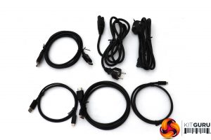 Inside, as well as UK and EU power cords, there are DisplayPort and HDMI cables plus two types of USB cable – one Type-C to Type-C, the other Type-A to Type-C – so you can connect the upstream signal whether you have USB-C or not on your host PC.