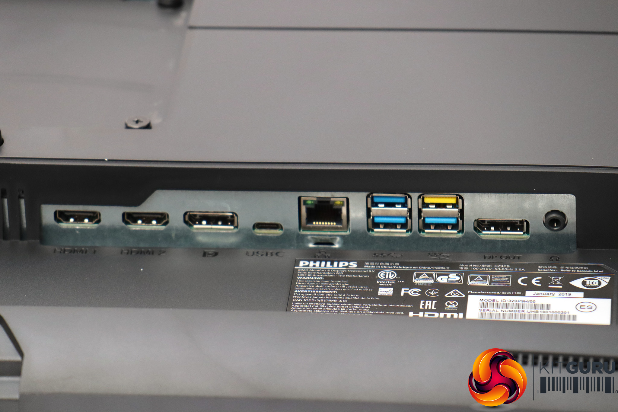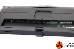 All the ports are in the same place on the rear of the panel, with just the power connection at the other end, alongside a physical switch. There are two HDMI 2.0 ports, then a DisplayPort 1.2. The USB-C connection next to that has many functions. It supports a video signal via USB-C DisplayPort Alt mode, but can also deliver 65W to an attached device. It acts as the upstream connection for the four-port USB 3.1 hub, one port of which supports fast charging (the yellow one).