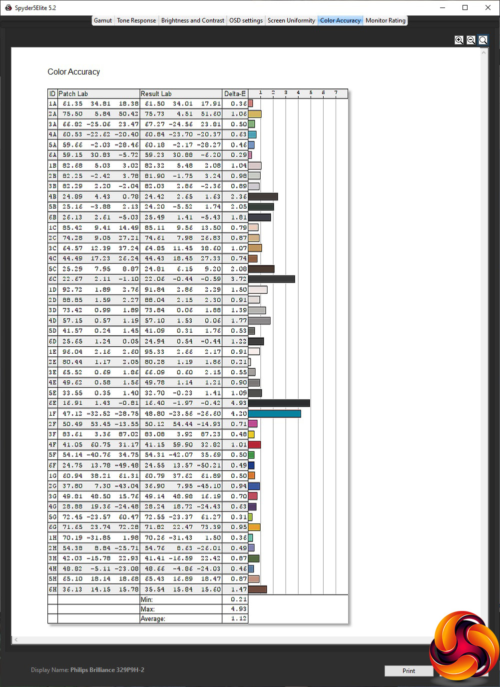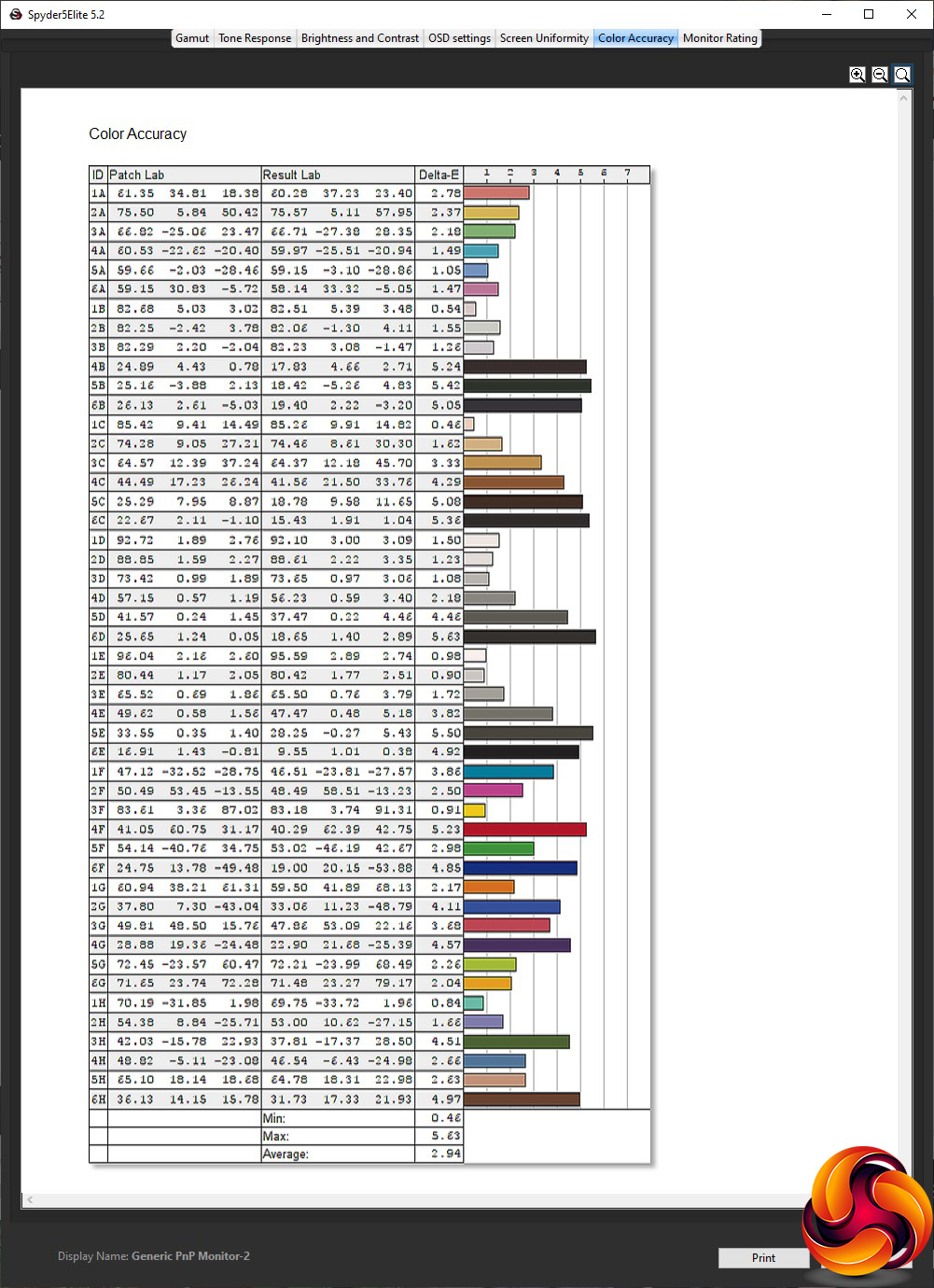 - The colour accuracy, expressed as a Delta E ratio, with a result under 3 being fine for normal use, and under 2 being great for colour-accurate design work.