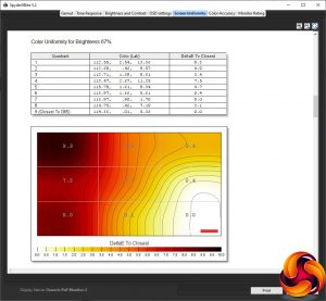 Colour uniformity is also quite deviant, particularly as the brightness increases.
