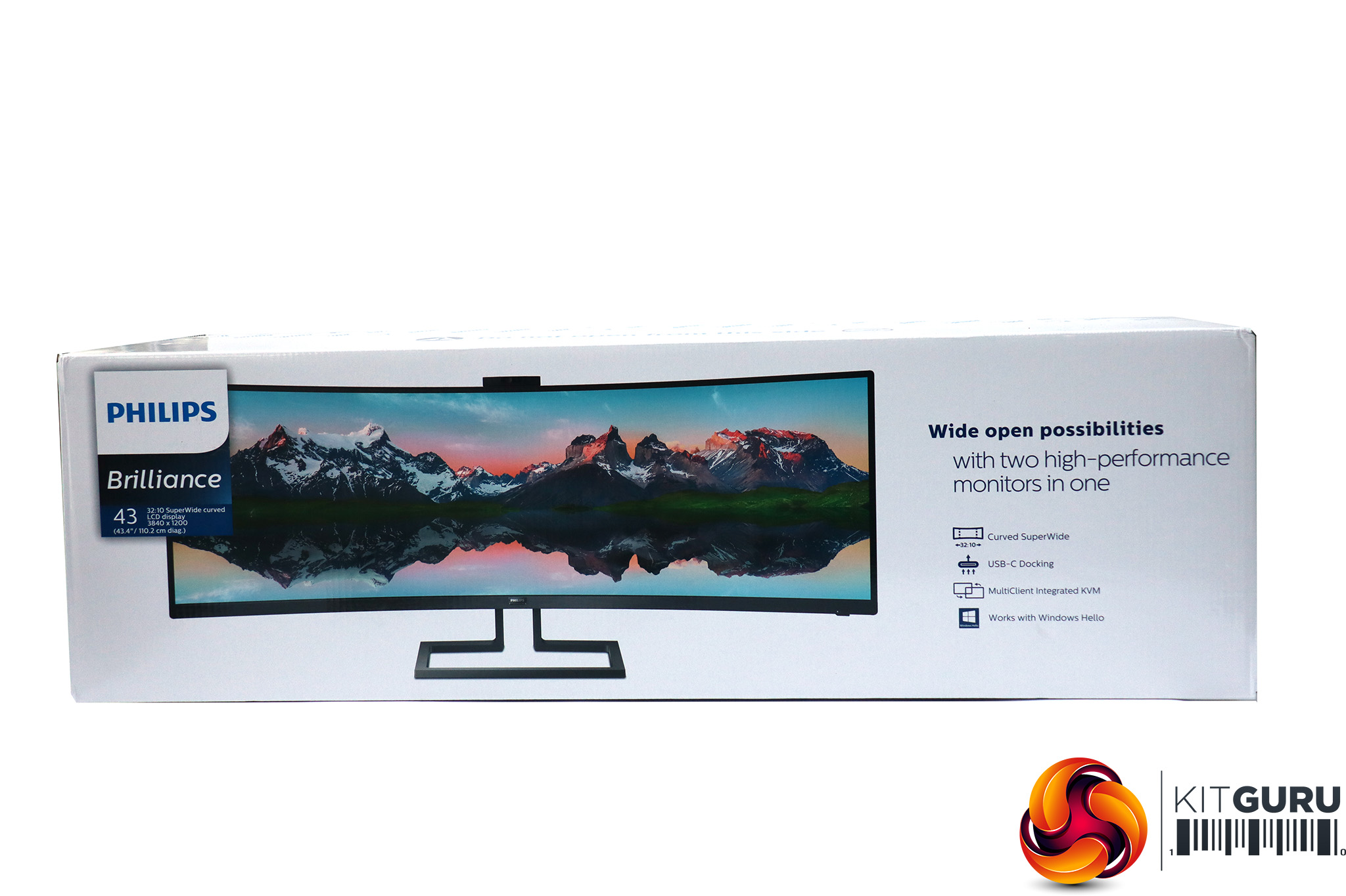 The Philips Brilliance 439P9H is long, thin, and massive, so its box is too.
