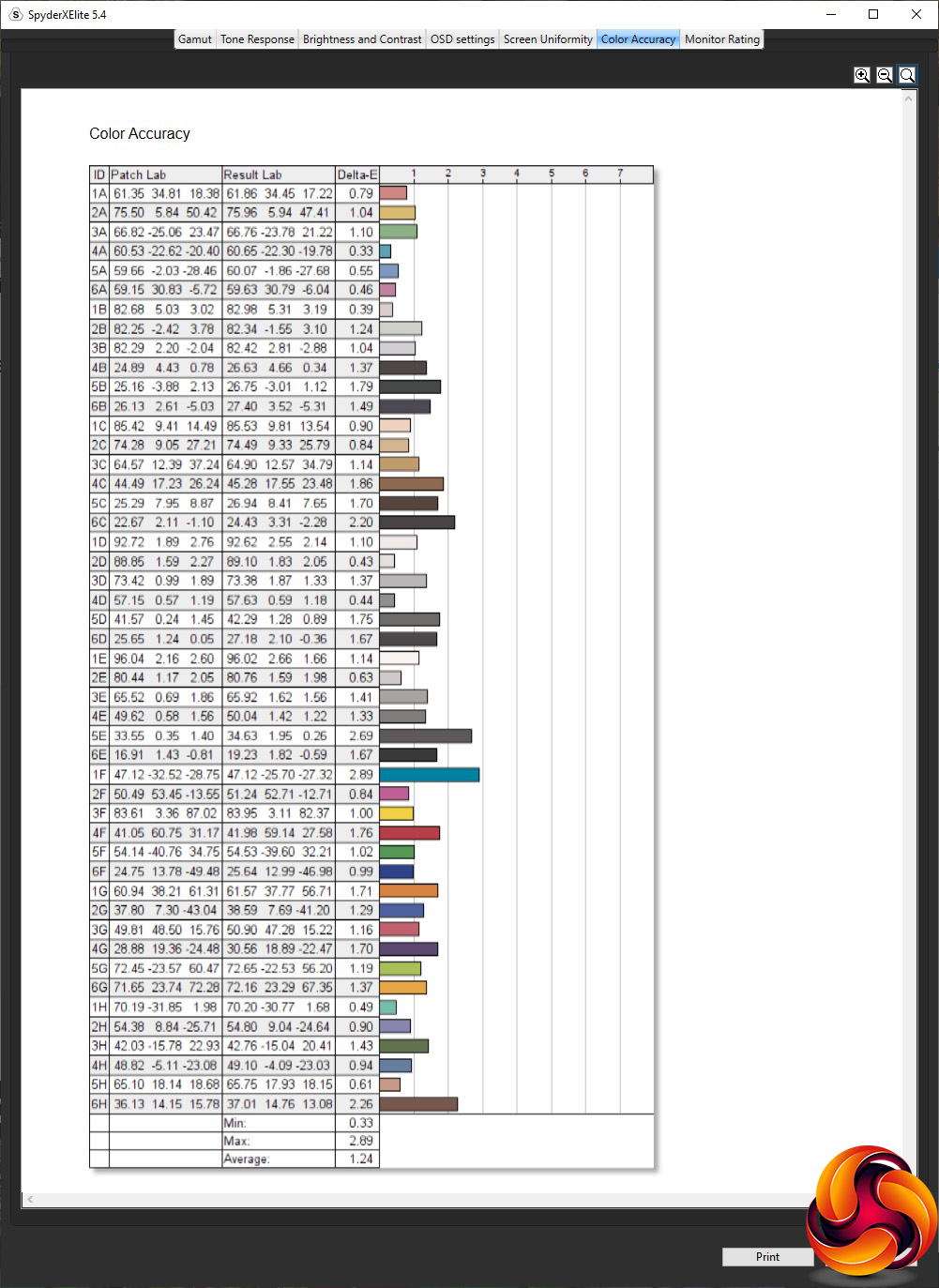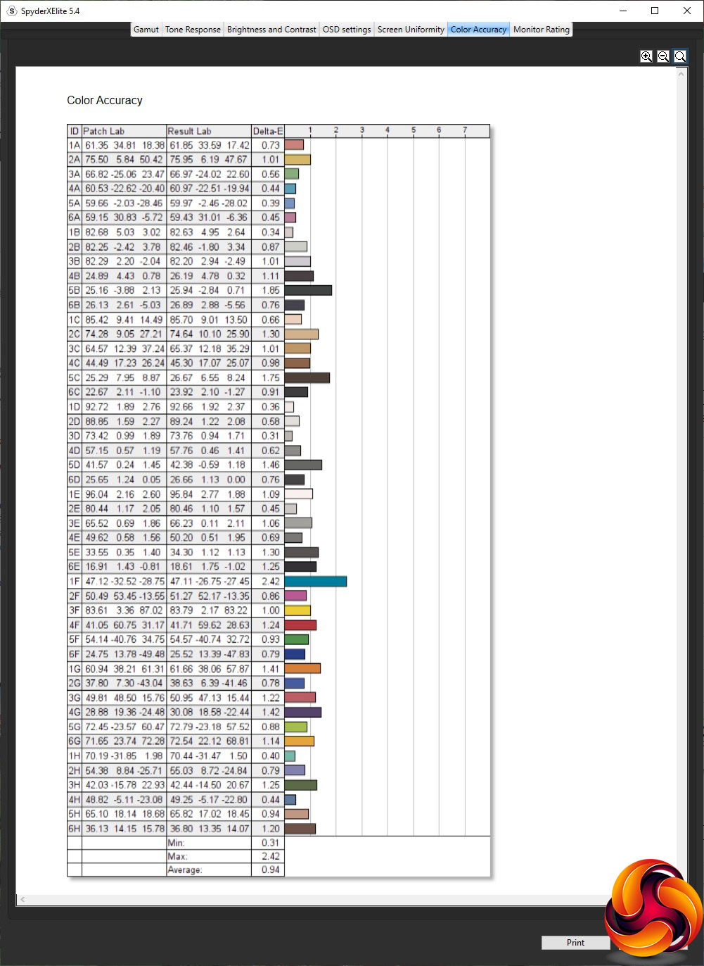 - The colour accuracy, expressed as a Delta E ratio, with a result under 3 being fine for normal use, and under 2 being great for colour-accurate design work.