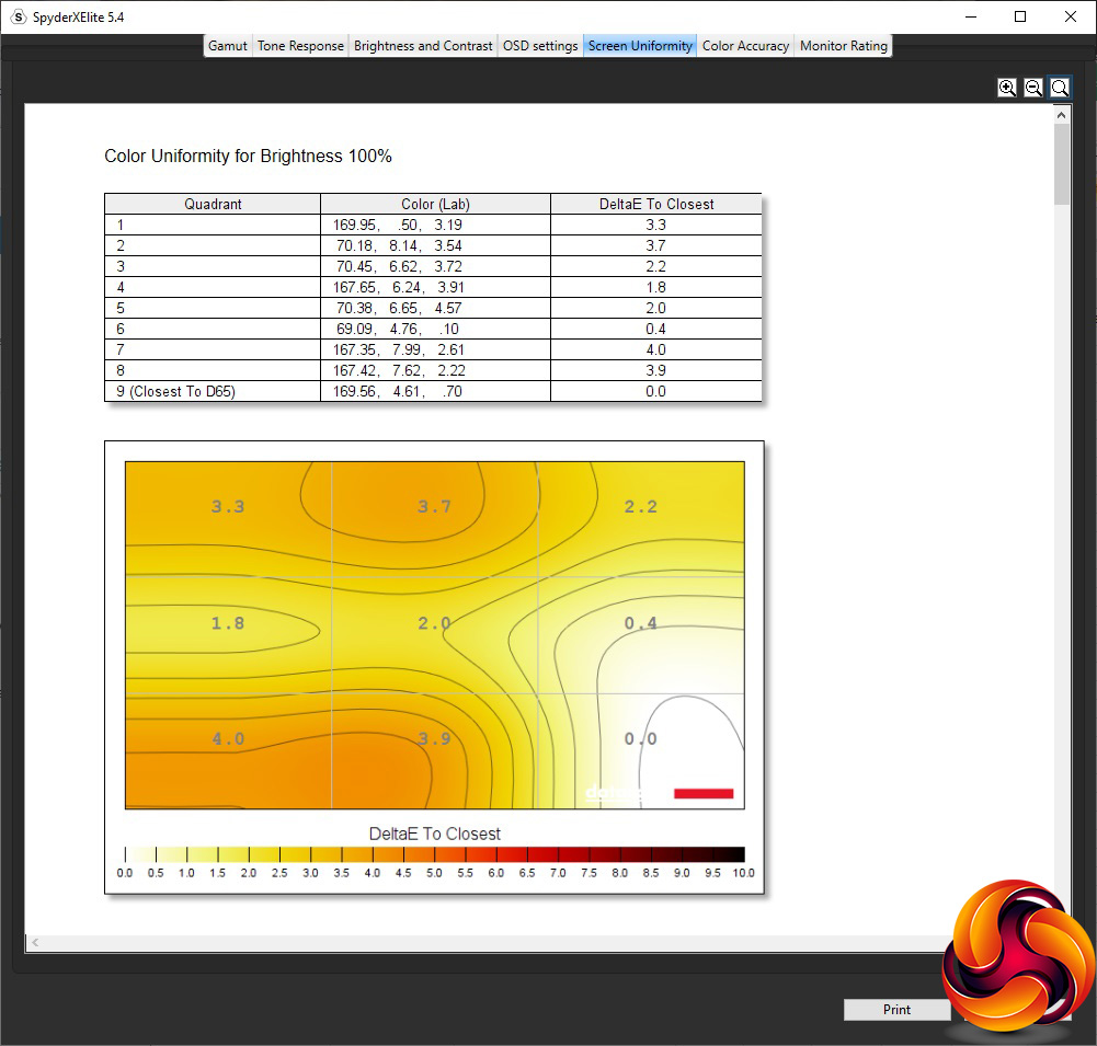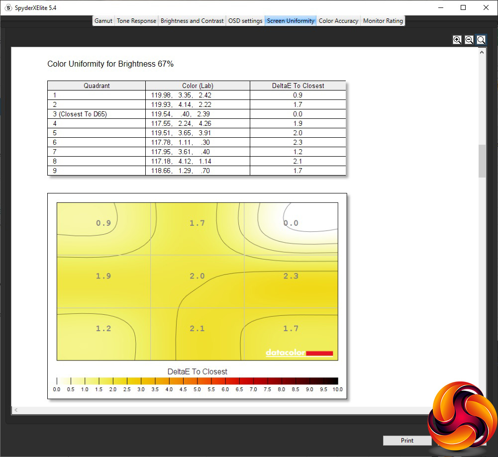 Colour uniformity is really good, particularly at 67 per cent brightness or lower.