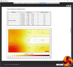 Our main test involves using a DataColor Spyder Elite 5 Colorimeter to assess a display’s image quality. The device sits on top of the screen while the software generates colour tones and patterns, which it compares against predetermined values to work out how accurate the screen is.