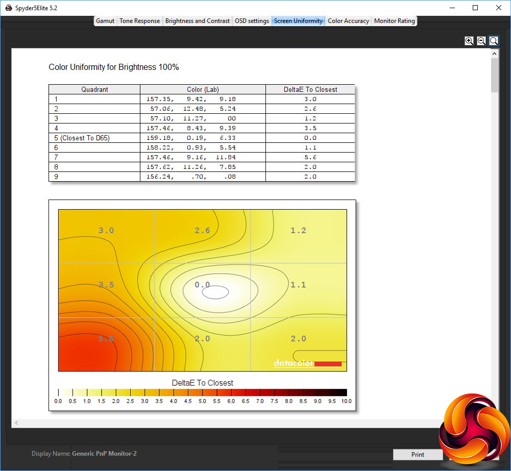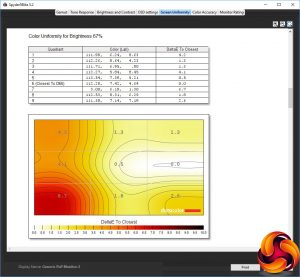 Brightness uniformity is reasonable, with no corner or edge going over 10 per cent difference to the centre, and most under 7 per cent.
