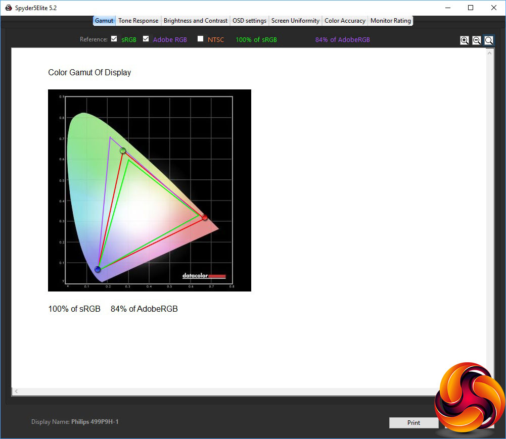 Sadly, the 499P9H only has mediocre colour accuracy out of the box, with an average deviance of 2.85. So it was a ripe candidate for calibration with the Spyder.