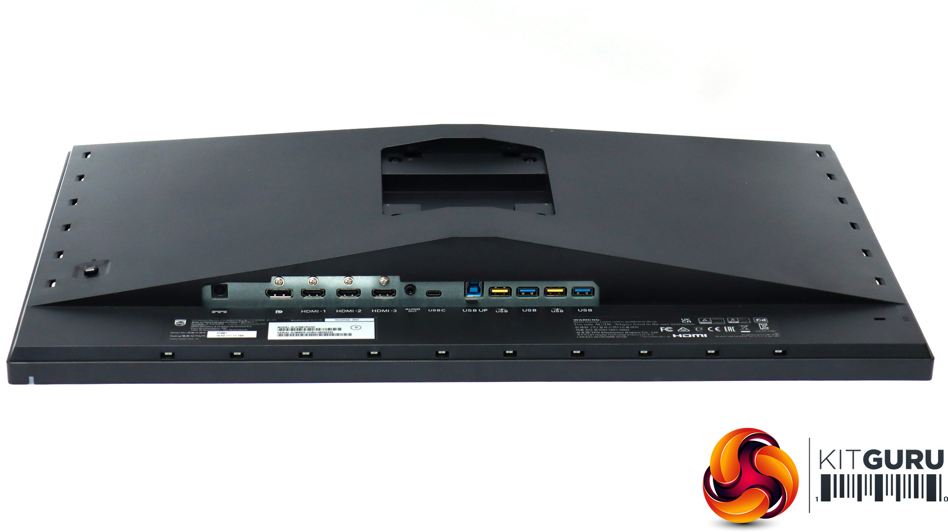 Inside, there are cables for DisplayPort and HDMI video connections, plus USB C, and of course the external power brick and its associated mains cord. Our sample only came with an EU cord but it was shipped from Philips's European PR company.