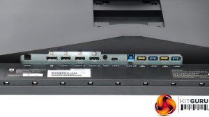 The port allocation is generous, too. Next to the power connection from the external brick is a quartet of video inputs. These include DisplayPort 1.4 plus three HDMI 2.1 ports, all of which support 144Hz refresh rates. Then there's an analog audio output, followed by the four-port USB hub. This offers both USB C and Type B upstream options, plus a quartet of USB 3.2 ports, two of which support fast charge BC 1.2. The USB C port also supports DP Alt mode, enabling 4K inputs at up to 120Hz. It can handle 65W of power both ways, too, so you could charge your laptop with it.