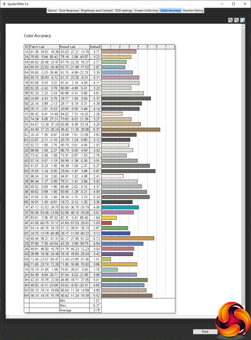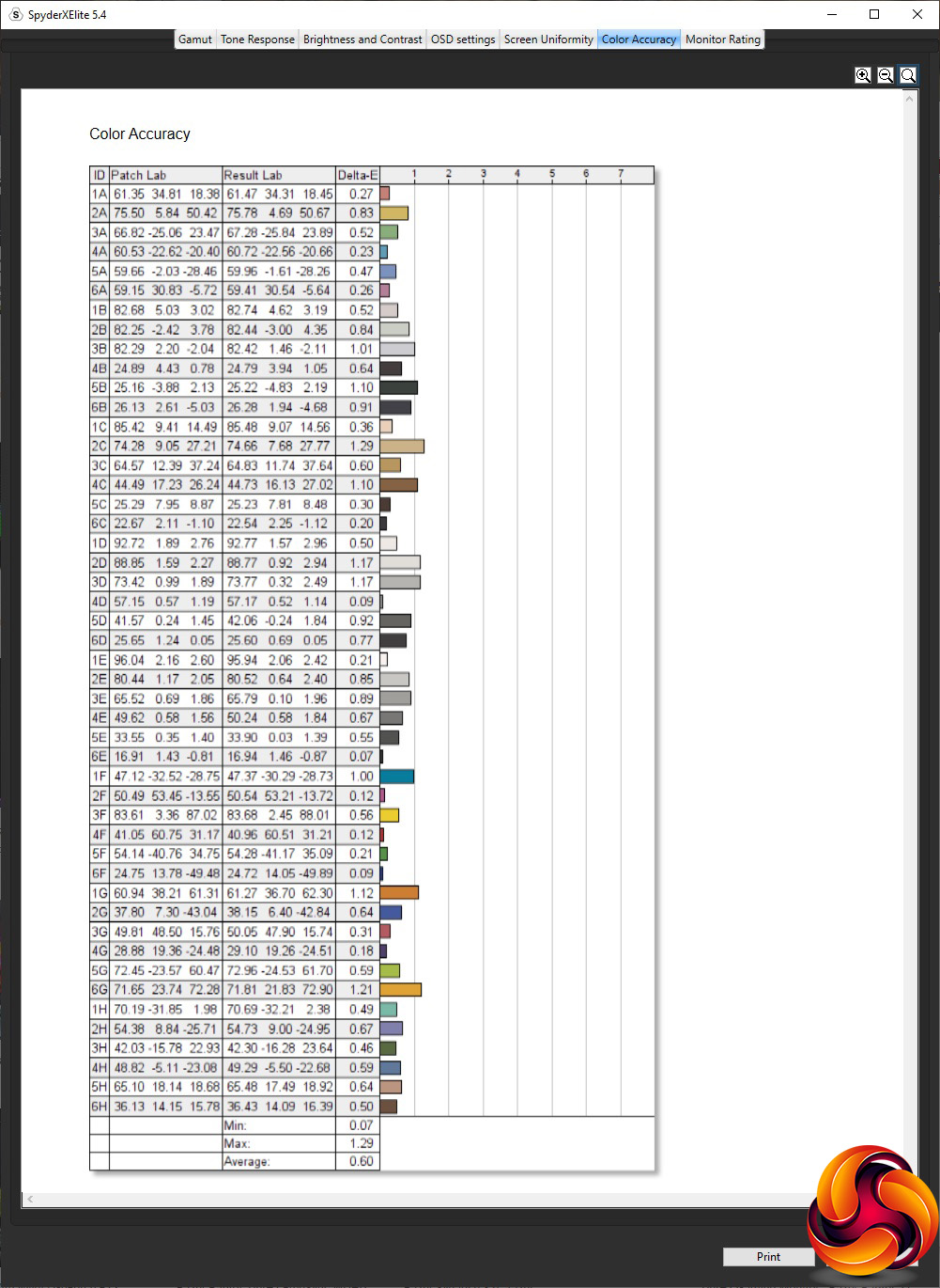- The colour accuracy, expressed as a Delta E ratio, with a result under 3 being fine for normal use, and under 2 being great for colour-accurate design work.