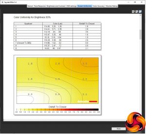 Our main test involves using a DataColor SpyderX Pro Colorimeter to assess a display’s image quality. The device sits on top of the screen panel surface while the software generates colour tones and patterns, which it compares against predetermined values to work out how accurate the screen is.