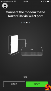 The Razer Sila smartphone app provides another way to set up your router, and potentially a more user-friendly one. First the app guides you through physically connecting the Sila to your modem and the power.