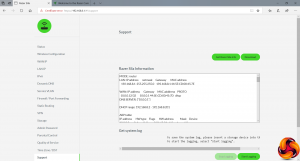 The last two options include the ability to set the time zone for the router's internal clock, whilst Support presents a system log.