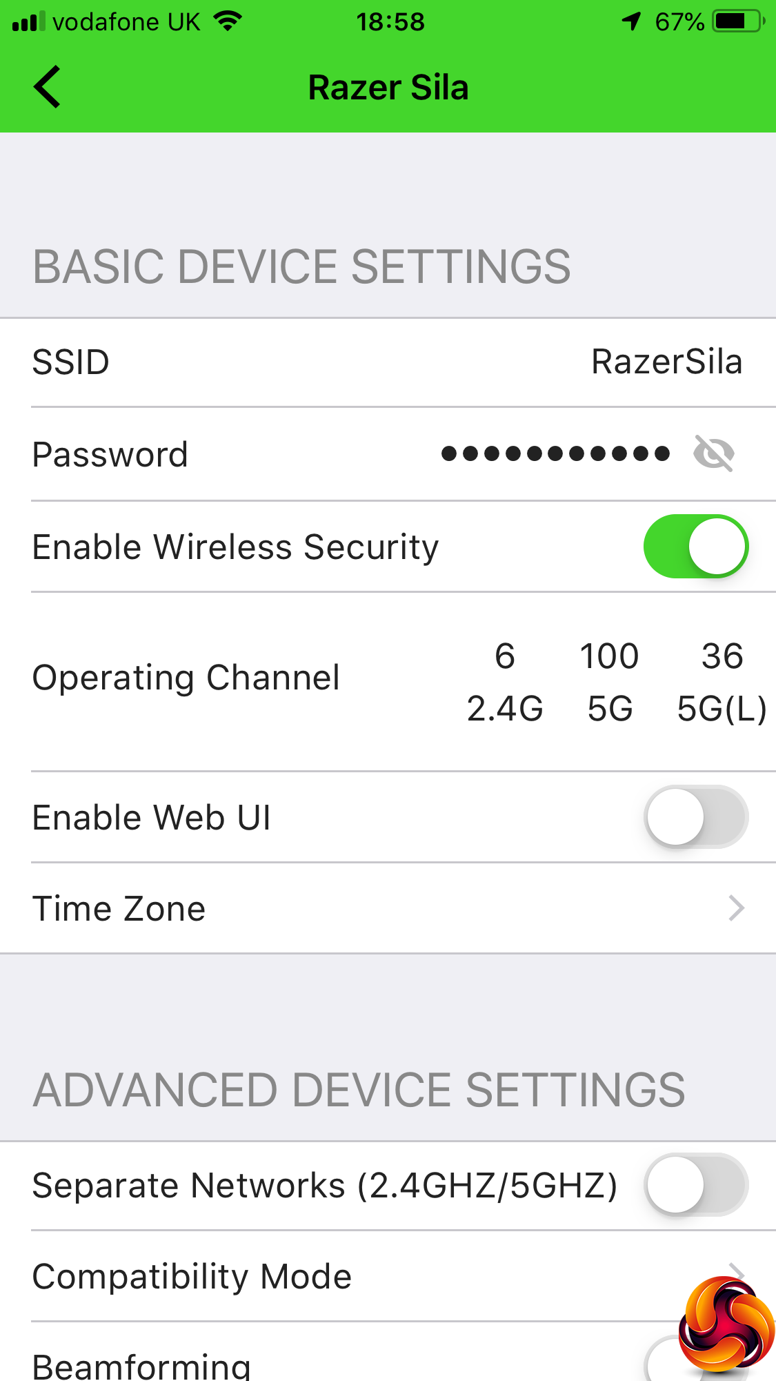 The app's management interface is rather attractive and graphical. You can click on your router to configure Basic and Advanced settings all from one page. Broadly the same range of options are available as via the Web interface.