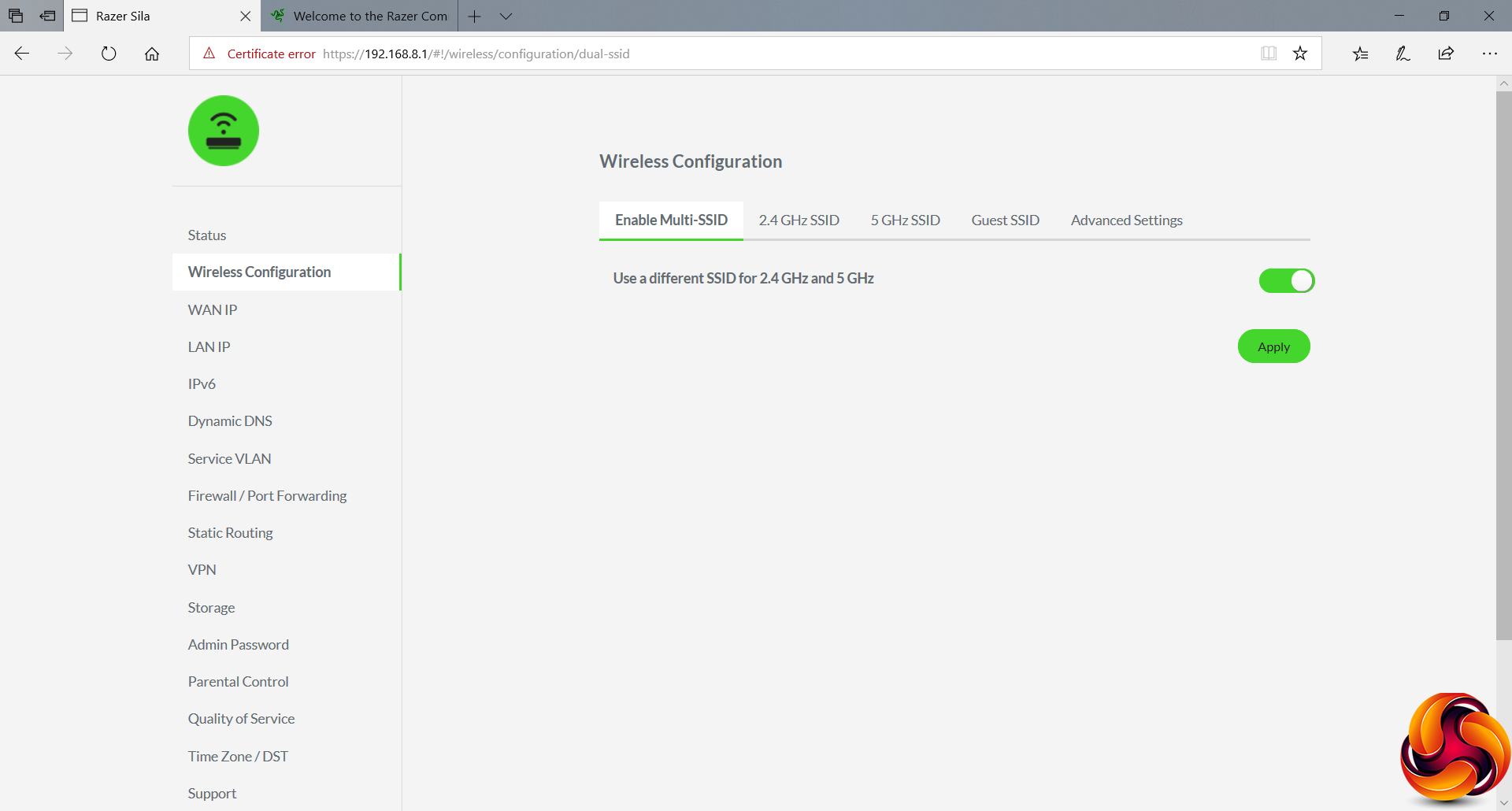 The Wireless Configuration lets you choose whether to use one SSID across all WiFi types, or a different one for each. You can also create a guest SSID, and choose how the 2.4GHz channels are allotted, as well as enable Beamforming for 5GHz. The latter can improve performance in some situations.