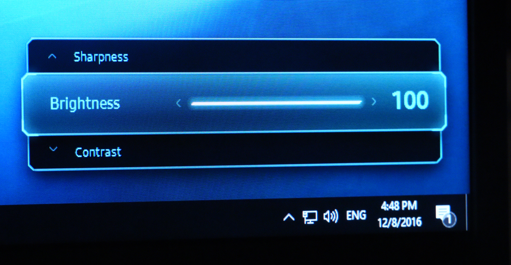 Press the joystick up or down, and you get quick access to brightness, contrast and sharpness.