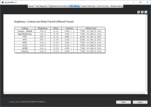 - A monitor’s contrast ratio at various brightness levels in the OSD.