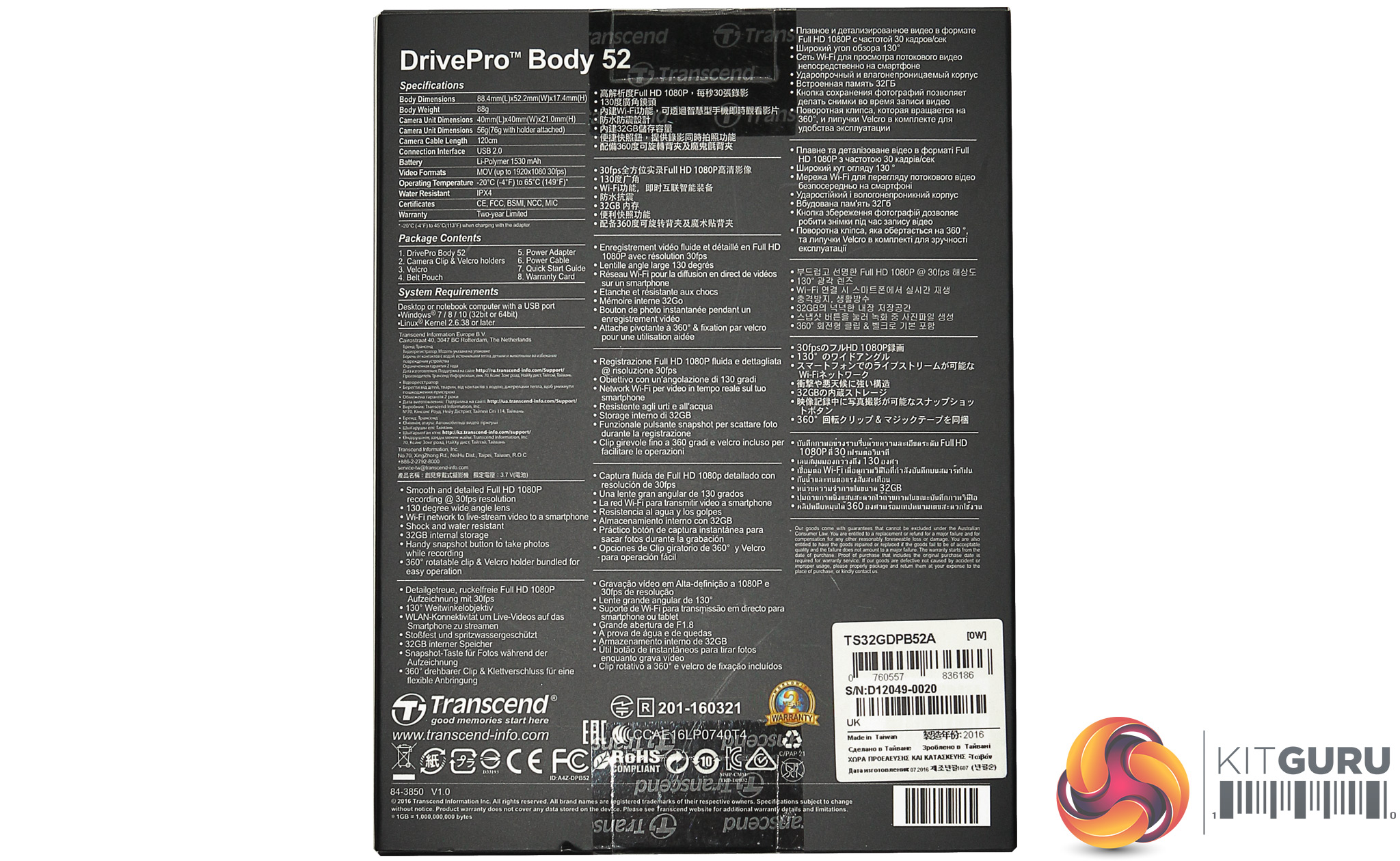The Transcend DrivePro Body 52 works as a standalone unit, rather than requiring any particular commercially installed infrastructure, so is available from regular electronics retailers.