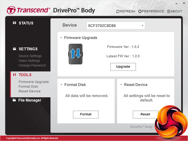 The Tools section is where firmware updates can be performed, which we found a pretty seamless affair. You can also format the built-in memory as well as reset everything to default.