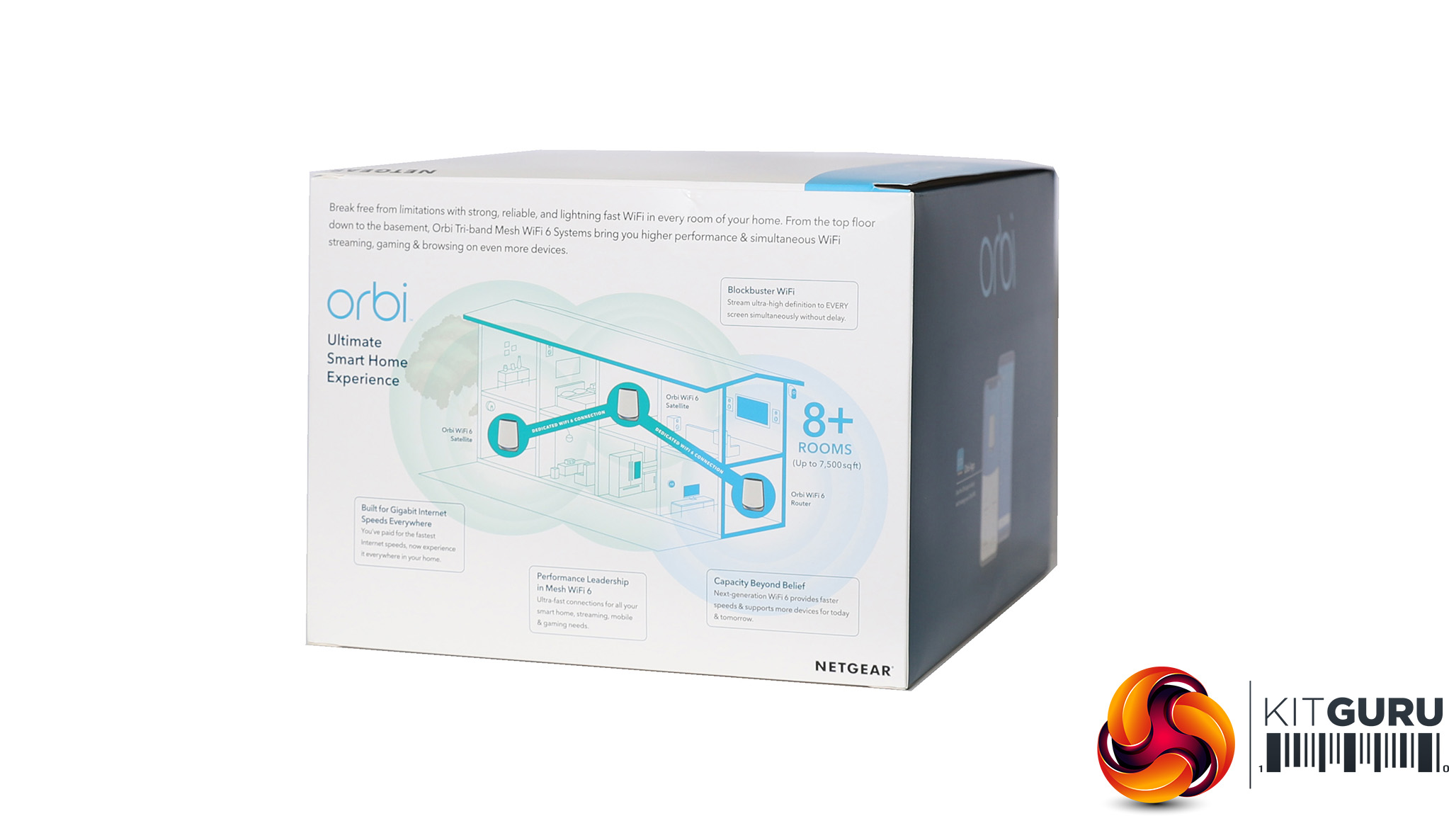 The packaging doesn't look a whole lot different from the AX4200, although the devices themselves look different. Rather than being “robust” this is an “ultimate” mesh WiFi 6 system, despite the fact that the coverge for three units is the same 6,000 square feet as with the three-unit AX4200. With two units, the AX6000 claims to cover 5,000 square feet rather than 4,000 square feet, however.