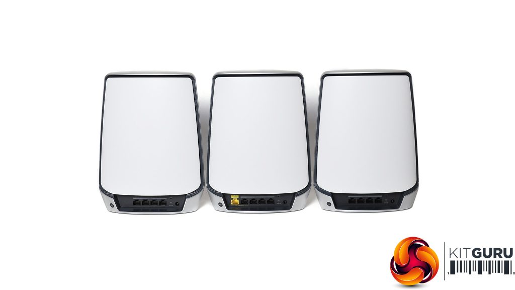 Aside from a beefier wireless spec, the AX6000 has a beefier wired spec than the AX4200 as well. The router has five Ethernet ports, with the fifth yellow one exclusively for the broadband WAN connection. This operates at up 2.5Gbits/sec, which is handy if you're connecting the Orbi to another network or have really, really fast broadband. The other four are just Gigabit-speed, as are the four ports on each of the satellites. Like the AX4200 units, there are no USB ports for connecting a printer or storage for network sharing.