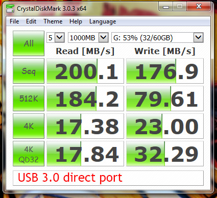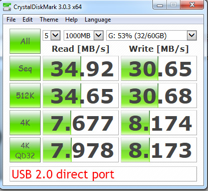 If you are thinking it might be a good spot to plug in your USB drive, remember, this is limited to USB 2.0 speeds. Still, it bears testing, so here is a quick look at how a Kingston HyperX 3.0 64GB performs in different scenarios: