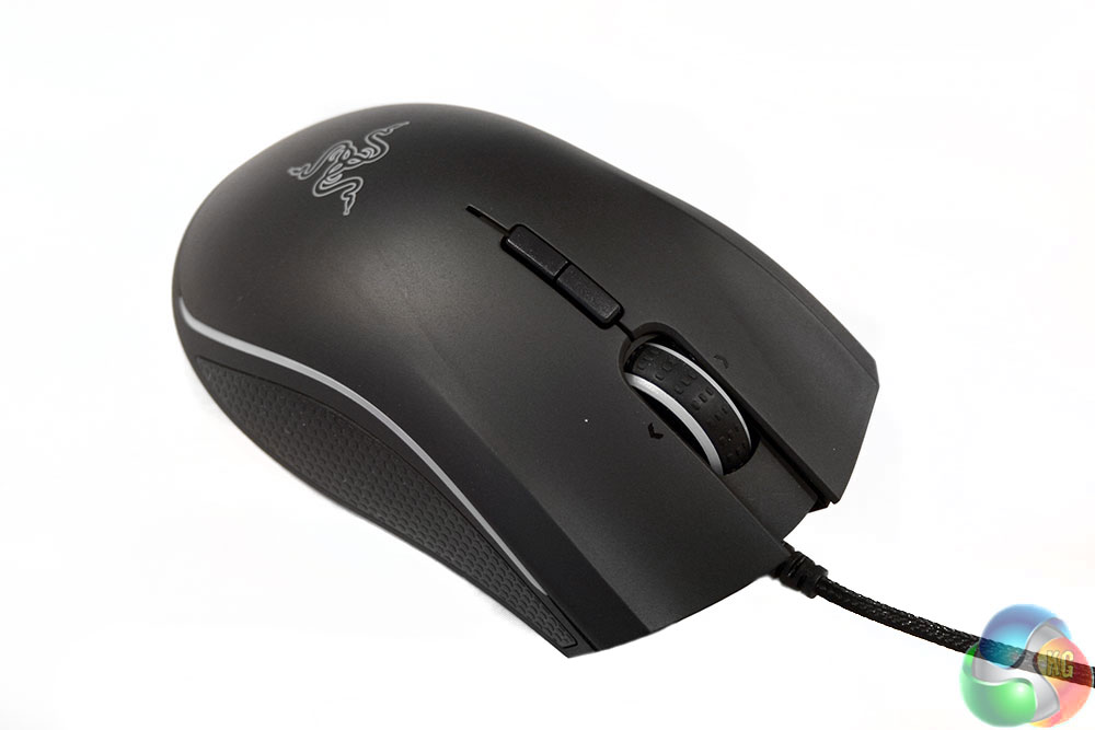 The Razer Mamba Tournament Edition looks very much like the Mamba that Razer recently announced at E3; except this one has a cable. Its main body is black plastic, with some clear-cut outs for the palm rest Razer logo, the curved lighting strips down the sides and the surround on the scroll wheel. These will light up when the mouse is powered on.